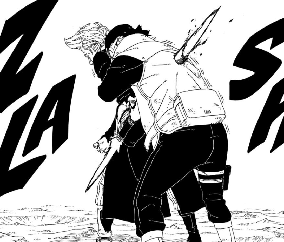 It's 11 days since Boruto: Two Blue Vortex (TBV) released, two months of chapters since Sarada and the rest of the team dispatched to the Sand returned to Konoha, six chapters (meaning six months) since Yodo was lying in the desert, bleeding out. One would think in the intervening time, someone might have directly said that Yodo is dead, mentioned something beyond the word sacrifice, that perhaps the main characters who were on the mission with her, Sarada, Mitsuki, Konohamaru, might have expressed grief or regret that a comrade died on a mission.